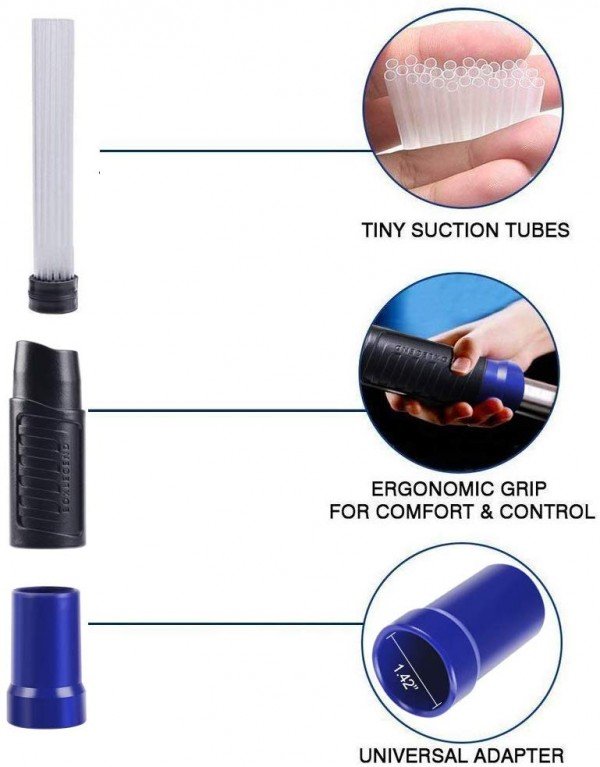 1. 【EXCELLENT TUBE DESIGN】- This vacuum brush consists of 30 long and flexible straws. Each straw is fixed with special glue to prevent it from falling off. Our vacuum brushes are made of soft, high quality plastic. The high-quality hose is not easy to be broken, the straw is not easy to block, and it will not fall off during use, ensuring the most comfortable use experience for the customer.