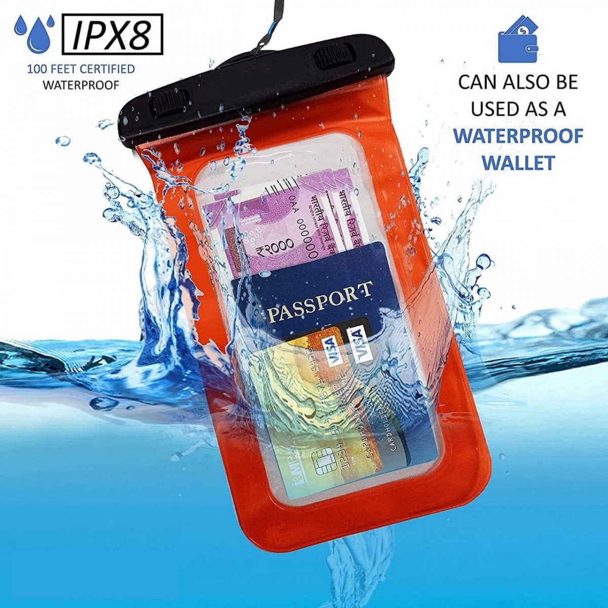 UNIVERSAL SIZE WATERPROOF CASE: This pouch fits all smartphones up to 6.5″ diagonal size (Certain big screen phones need to remove protective case); It also doubles up as waterproof dry bag / wallet, to store credit card / [passport / cash etc. for beach, fishing, diving and water park activities